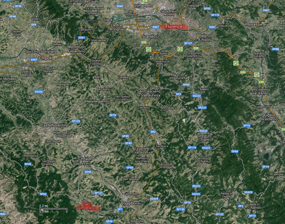 This map shows where San Gimignano